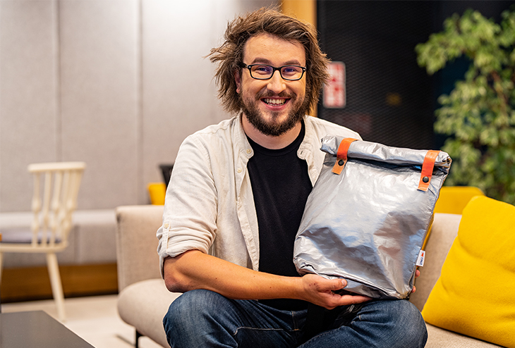 Przerabiamy nasze wielkoformatowe materiały reklamowe na różne użyteczne przedmioty, które zamiast na wysypisko, trafiają do klientów w postaci toreb, plecaków, nerek, opakowań na laptopy, gadżetów dla dzieci.